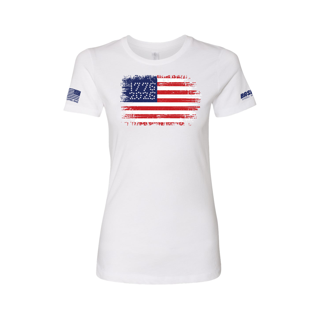 1776 Women’s Patriotic American Flag Tee – Based Apparel
