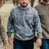 Classic camo gets a modern upgrade in a cool blue grey. Made to blend in with the brush or the couch. Features an embroidered Based logo at the left chest and an embroidered American flag at the right sleeve.