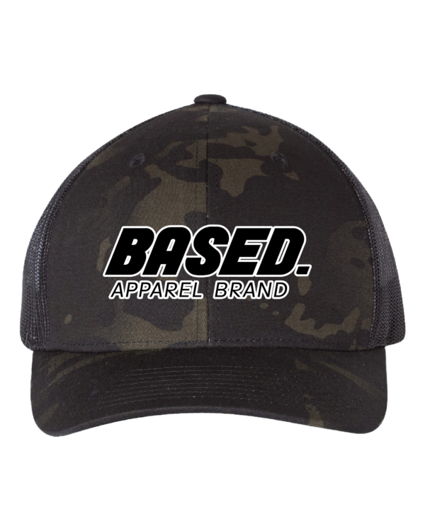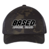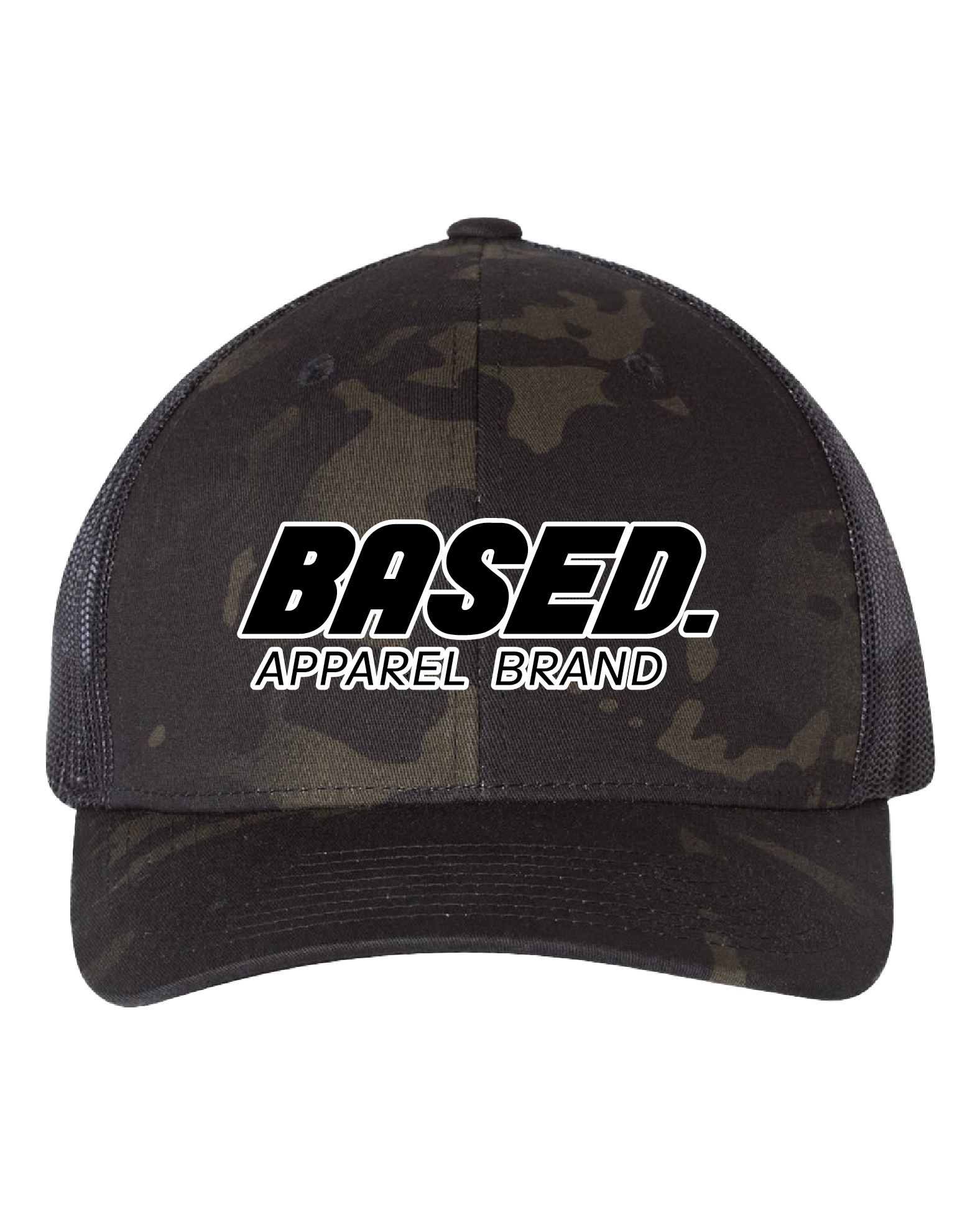 This black multi-camo trucker hat is a subtle nod to our nation’s military. Features an embroidered Based logo.