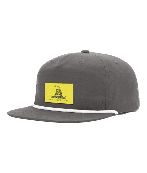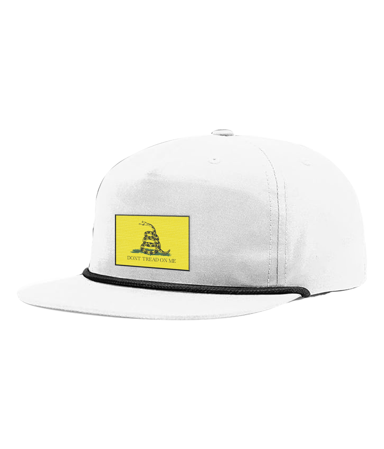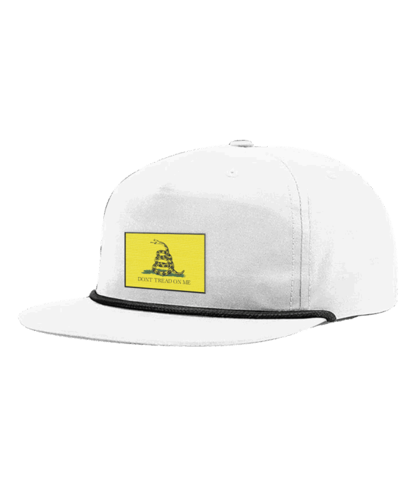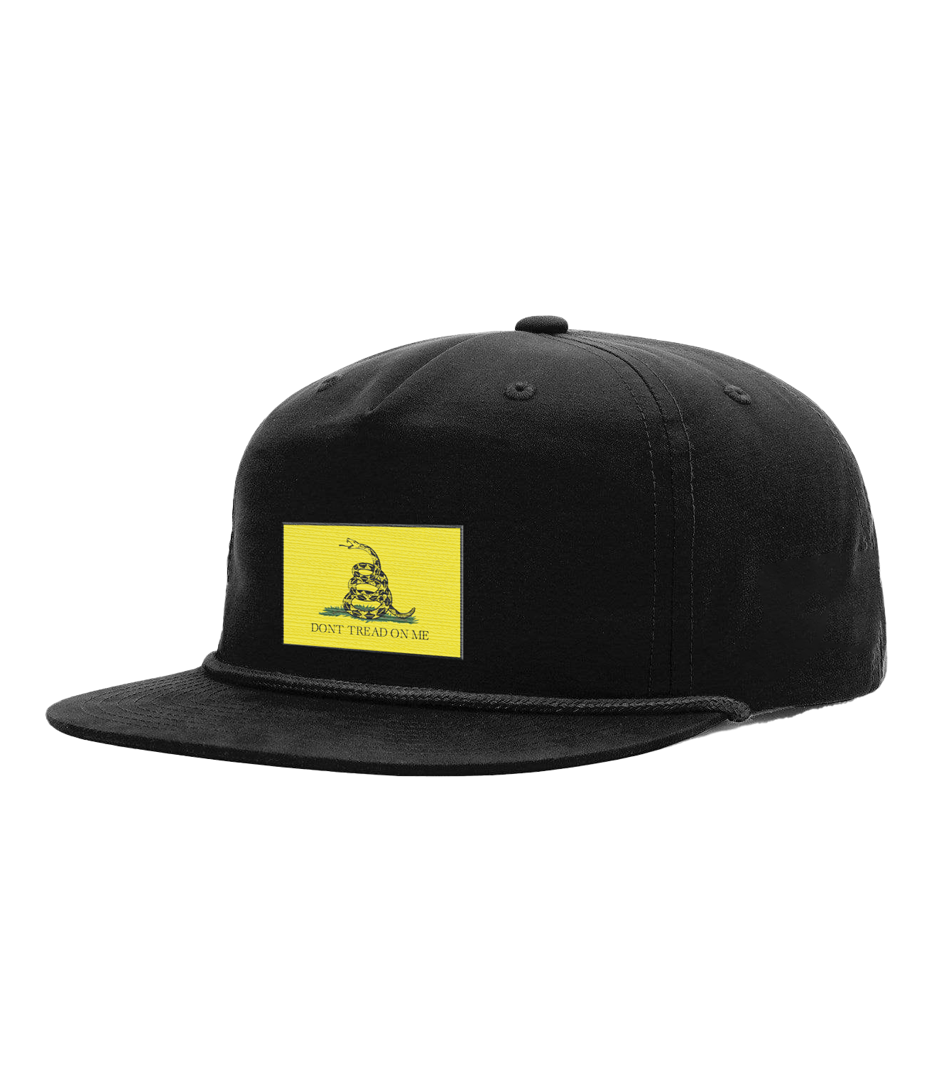 The Gadsden Flag with an edge. This five-panel cap is inspired by the California street scene. Features a contrast cord at the bill and an abbreviated “BA” at the side.