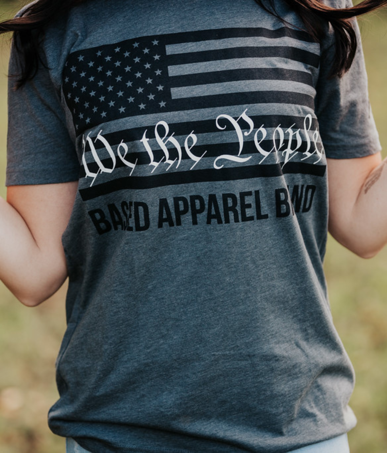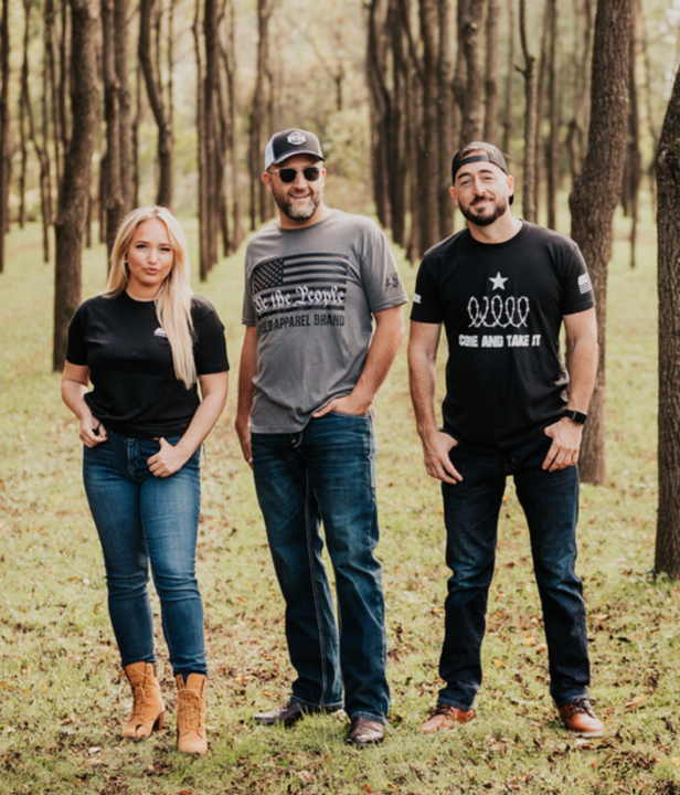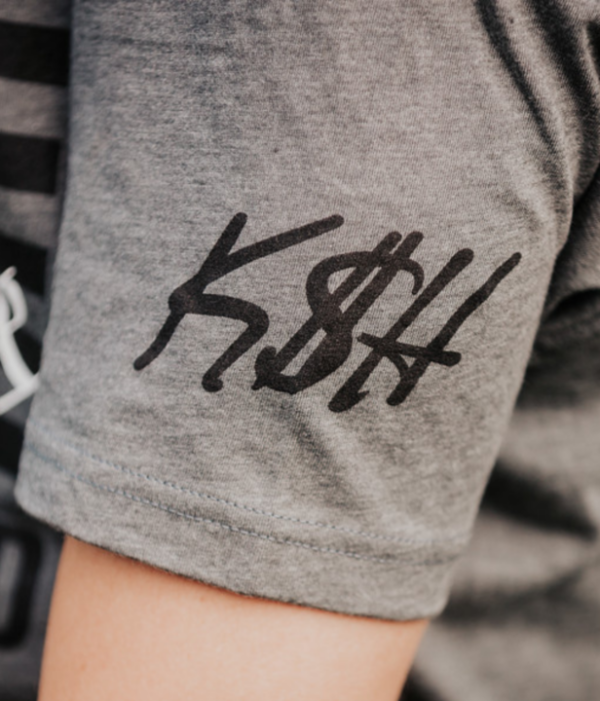 Keepin’ it classic. This T-shirt features the American flag and ‘We the People’ at the chest, paired with Kash Patel’s hand-written “K$H” at the sleeve.